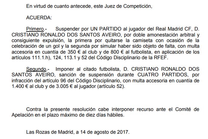 ‼️ÚLTIMA HORA El jutge únic ha castigat Cristiano Ronaldo amb 1 partit de sanció per l'expulsió i 4 per l'empenta a l'àrbitre.