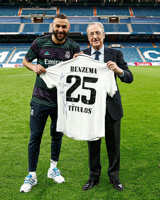 ✍👕 “Para mi presi, KB9” @Benzema 🤝 Florentino Pérez #GraciasKarim