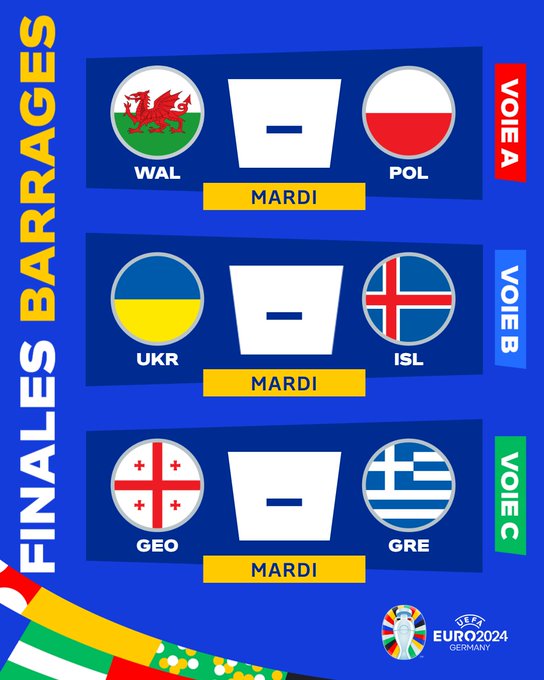 ⚽ Les 𝓪𝓯𝓯𝓲𝓬𝓱𝓮𝓼 des 3️⃣ finales des barrages 🧐 #EURO2024
