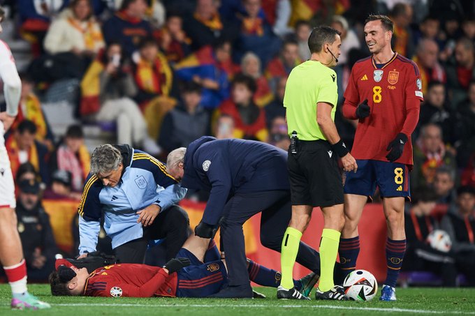 🚨 Gavi souffrirait d'une rupture du ligament croisé antérieur. 😰 Si la blessure est confirmée, il sera absent entre 6 et 9 mois. Cela marquerait la fin de sa saison. Il serait ainsi forfait pour l'Euro 2024. 🗞️ @diarioas