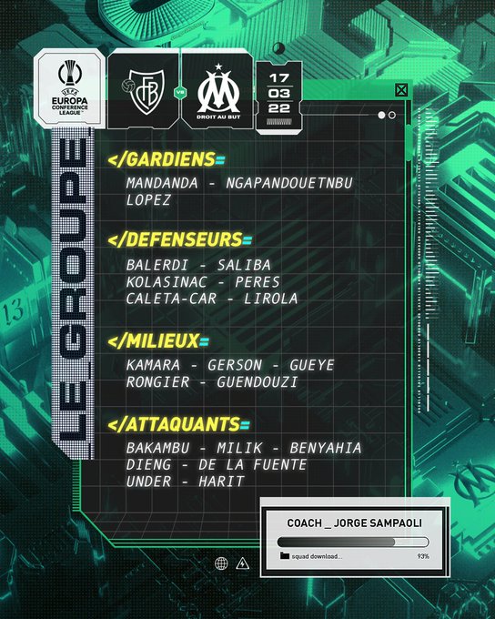 👥 Lᴇ ɢʀᴏᴜᴘᴇ convoqué par le coach 𝑱𝒐𝒓𝒈𝒆 𝑺𝒂𝒎𝒑𝒂𝒐𝒍𝒊 pour jouer le huitième de finale retour d’@europacnfleague demain soir à 18h45 face au @FC_Basel_fr 🔥 #FCBOM