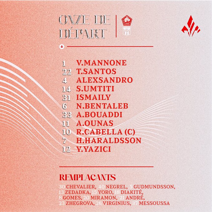Supporters du LOSC, voici votre composition d'équipe pour affronter le @KI_Klaksvik 👊 #LOSCKI #UECL
