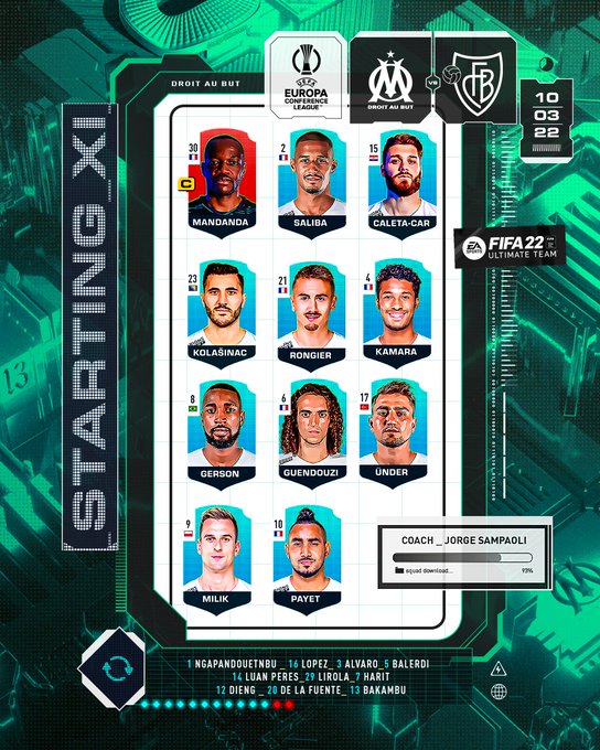 𝗖𝗢𝗠𝗣𝗢𝗦𝗜𝗧𝗜𝗢𝗡 🔥 Notre 𝗫𝗜 𝗱𝗲 𝗱𝗲́𝗽𝗮𝗿𝘁 pour affronter @FC_Basel_fr ⚔️ #OMFCB ⎢ #UECL