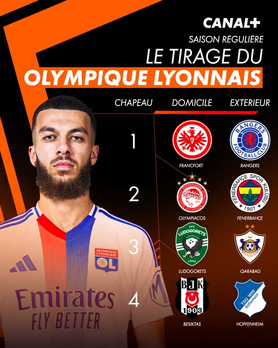 LE TIRAGE DE L’OLYMPIQUE LYONNAIS EN SAISON RÉGULIÈRE DE LIGUE EUROPA 🏆 Les Lyonnais affronteront notamment les Rangers, Francfort et Fenerbahçe 😳 #UELdraw