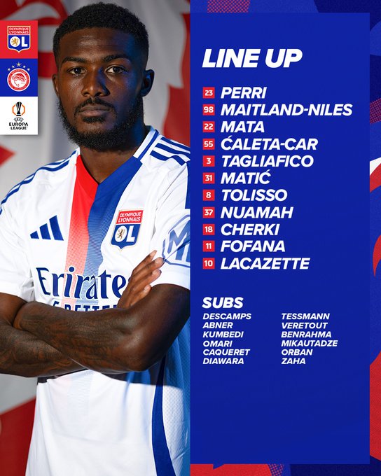 🦁 Notre 𝗫𝗜 𝗱𝗲 𝗱𝗲́𝗽𝗮𝗿𝘁 pour affronter l'Olympiacos en @EuropaLeague 👊🔴🔵 #OLOLY