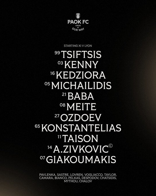 Η αρχική 11άδα της ομάδας μας για το παιχνίδι κόντρα στη Λυών.