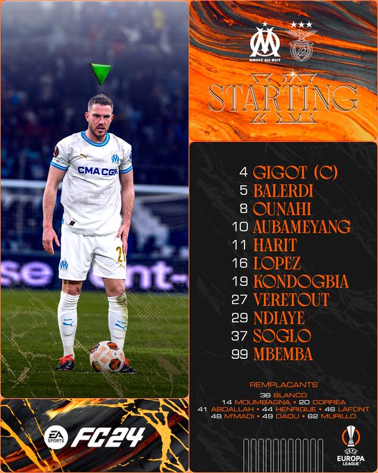 ๐ Le ๐ซ๐ ๐ฑ๐ฒ ๐ฑ๐ฒฬ๐ฝ๐ฎ๐ฟ๐ olympien pour ce quart de finale retour dโ@EuropaLeague contre Benfica ! ๐ #OMSLB ๐ฅ