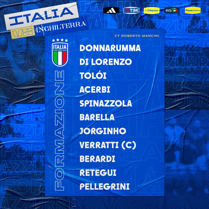 𝘌𝘶𝘳𝘰𝘱𝘦𝘢𝘯 𝘘𝘶𝘢𝘭𝘪𝘧𝘪𝘦𝘳𝘴 Gli 11 #Azzurri 💙 scelti dal Ct Mancini per #Italia 🇮🇹 🆚 #Inghilterra 🏴 ⏱️ Oggi, ore 20.45 🏟️ Stadio “Maradona” - #Napoli 📺 In diretta su #Rai1 #ItaliaInghilterra #ItaIng #Nazionale #VivoAzzurro #Euro2024