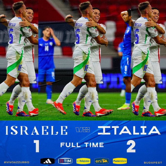 𝐍𝐚𝐭𝐢𝐨𝐧𝐬 𝐋𝐞𝐚𝐠𝐮𝐞 🇮🇱 🇮🇹 1️⃣-2️⃣ ⚽️ #Frattesi 38', #Kean 62', Abu Fani 90' 📋 A Budapest gli #Azzurri di Spalletti volano a punteggio pieno, dopo le prime due gare di #NationsLeague. #IsraeleItalia #Nazionale #VivoAzzurro