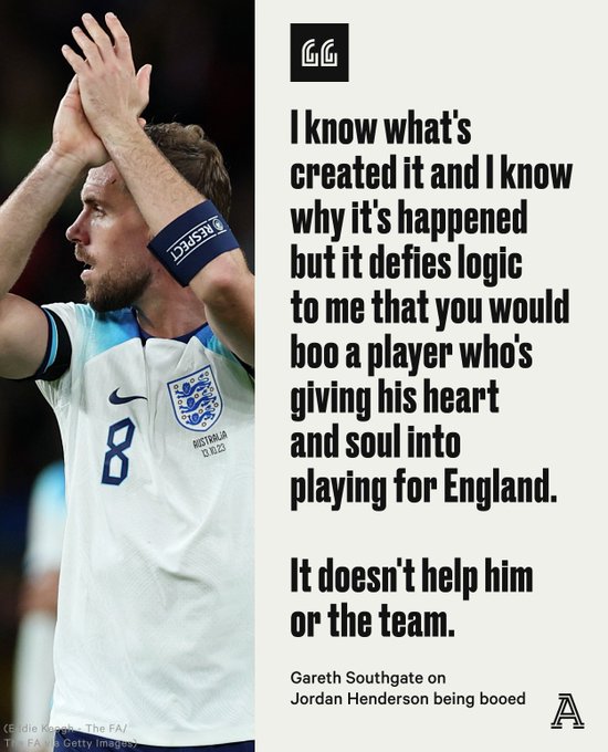 Gareth Southgate says he does not understand the reception Jordan Henderson received at Wembley during England’s victory over Australia. #ENGAUS
