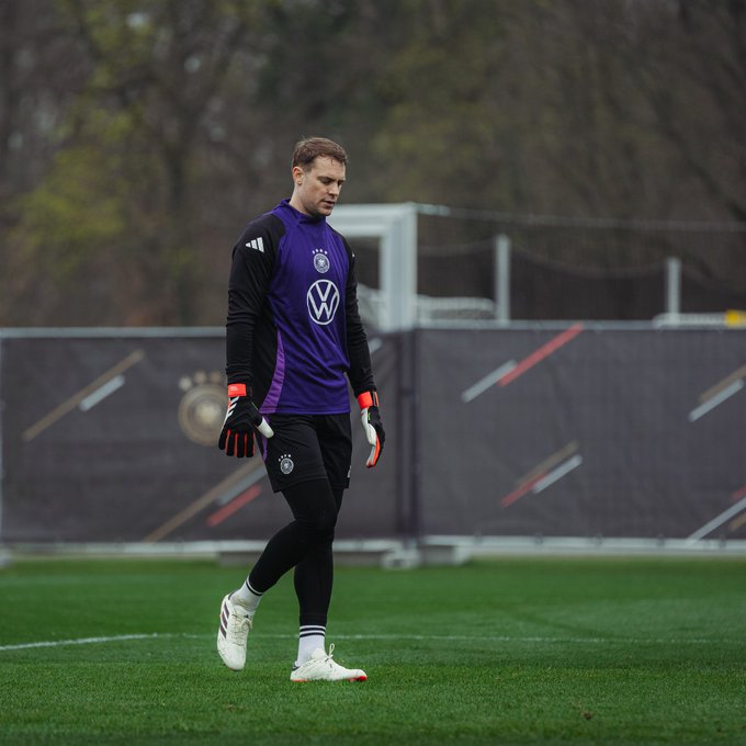 ℹ️ Manuel Neuer ist wegen eines Muskelfaserrisses im linken Adduktor vorzeitig abgereist und fällt für die beiden anstehenden Länderspiele aus. Die Verletzung hatte er sich am Vormittag im Training zugezogen. Gute Besserung, Manu! 🖤❤️💛 #dfbteam 📸 DFB/Philipp Reinhard