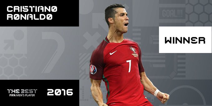 Il est #TheBest !!! 🏆 Bravo @Cristiano Ronaldo 🇵🇹, joueur de la FIFA 2016 !!!