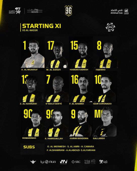 🗒 || Starting lineup, @AlNassrFC vs #ittihad