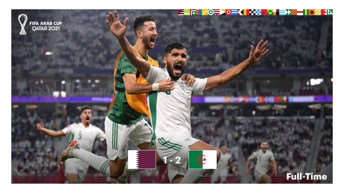 👏L'Algérie rejoint la Tunisie en finale🇩🇿🇩🇿🇩🇿 🦊Les Fennecs arrachent la victoire face au Qatar au bout du bout des arrêts de jeu, sur un penalty de Youcef Belaili🥵🎯 #FIFArabCup l @LesVerts