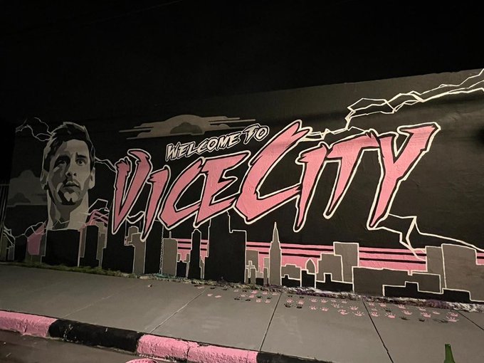🎨 La Rivalidad Se Intensifica! Apparently, Orlando City fans recently threw purple paint over Vice City’s new mural welcoming Leo Messi, but the Inter Miami supporters group quickly worked to remove and repaint it. Even the sidewalk got a touch-up! #InterMiamiCF #Messi𓃵