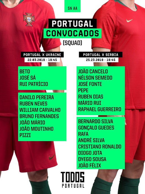 Estes são os convocados para o início da defesa do título! #TodosPortugal Vem ver os craques ao vivo! 🇵🇹 x 🇺🇦 ⚽️ 🇵🇹 x 🇷🇸 📅 22/03 e 25/03 🎟️ bilheteira.fpf.pt e bit.ly/Continente180 🏟️ Estádio da Luz