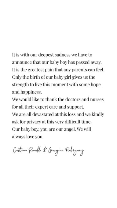 Your pain is our pain, @Cristiano 💔 Sending love and strength to you and the family at this time.