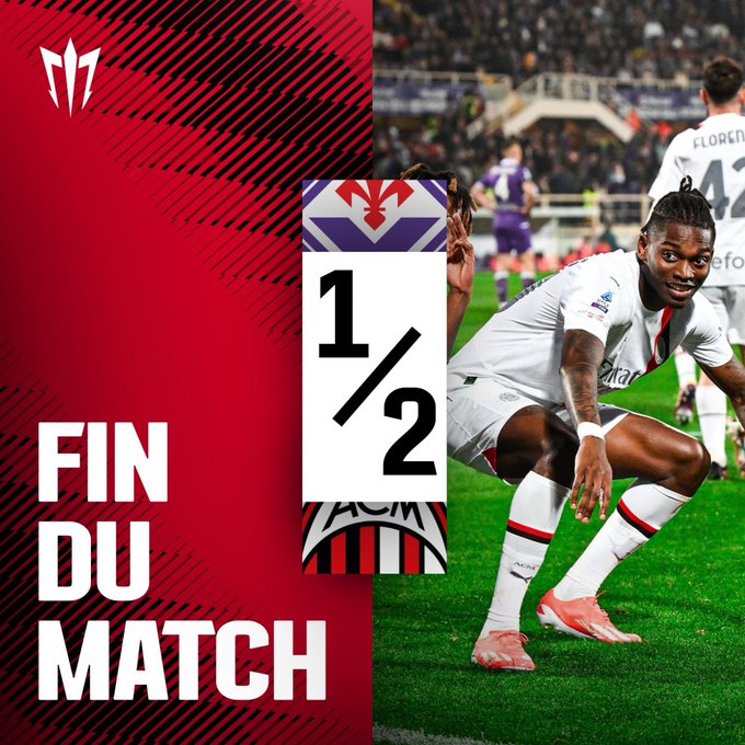 FIN DU MATCH : Milan s’impose 2-1 sur le terrain de la Fiorentina, avec des buts de Loftus et de Leão. À noter que Rafa est à l’assist et à la finition dans ce match. Milan est 2e, avec 6 points d’avance sur la Juve. Bon week-end et bonne Pâques à vous ! 🤲🏼