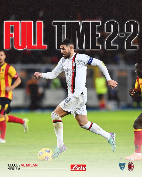 Full time. #LecceMilan #SempreMilan Brought to you by @Acqua_Lete
