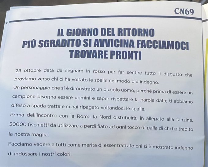 La Curva Nord de l’Inter annonce qu’elle distribuera 50.000 sifflets à l’occasion du match face à la Roma le 29 octobre. Le but : siffler Romelu #Lukaku à chaque prise de balle. Le Belge est décrit comme un “petit homme” après son attitude cet été.