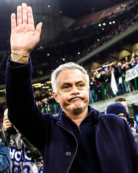 Jose Mourinho salutes the crowd in his first trip to face Inter at the San Siro as Roma boss. He won a famous treble at Inter in 2009-10 😘