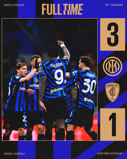 3️⃣⚽⚽⚽🟰3️⃣ Punti 🖤💙 #ForzaInter #InterEmpoli