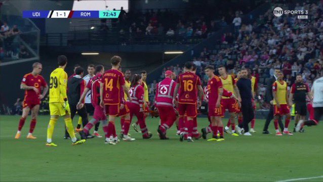 🚨 Le défenseur de la Roma Evan Ndicka s’est effondré au sol et a perdu connaissance pendant le match Udinese-Roma ! Le match a été logiquement suspendu ! Grosse force à Ndicka et toute sa famille ❤️🙏🏼