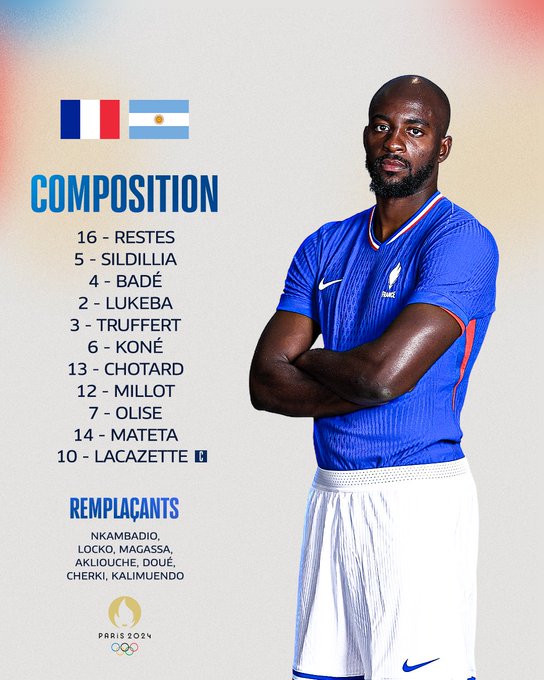 𝑬𝒏 𝒐𝒓𝒅𝒓𝒆 𝒅𝒆 𝒃𝒂𝒕𝒂𝒊𝒍𝒍𝒆 ⚔️🫡 Voici nos 11 guerriers qui débuteront ce quart de finale contre l’Argentine 👊 🇫🇷🇦🇷 | #FRAARG | #Paris2024