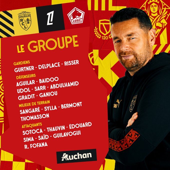 Le 𝒈𝒓𝒐𝒖𝒑𝒆 𝒍𝒆𝒏𝒔𝒐𝒊𝒔 pour le derby 🔴🟡 Voici les 2⃣1⃣ 𝐒𝐚𝐧𝐠 𝐞𝐭 𝐎𝐫 convoqués par le coach Pierre Sage pour #RCLLOSC. #FiersDEtreLensois