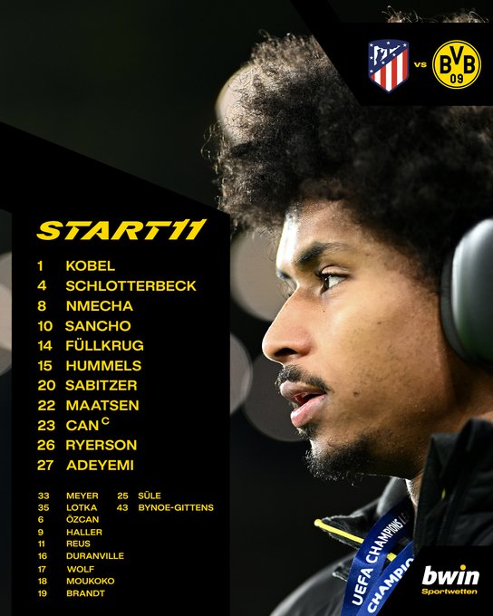 🚨 STARTELF 🚨 #UCL #AtletiBVB 🌟