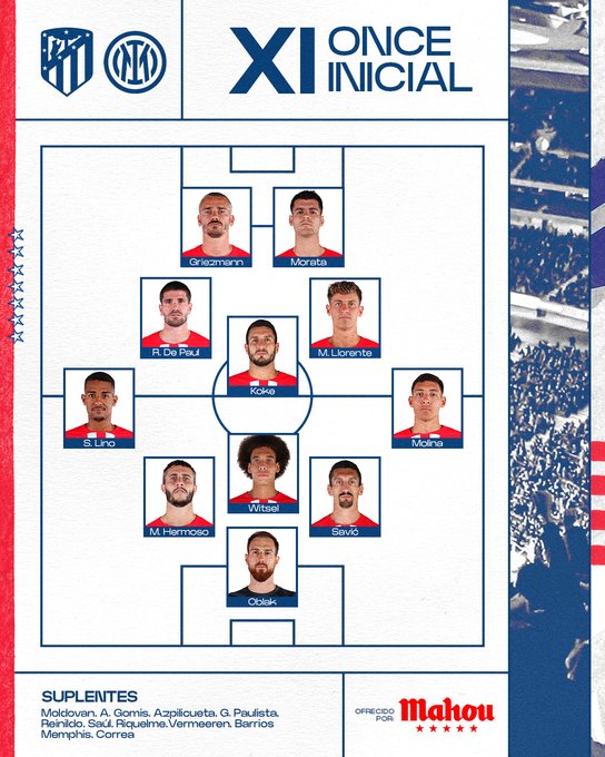 Oblak - Hermoso, Witsel, Savic - Lino, Koke, De Paul, Llorente, Molina - Griezmann, Morata