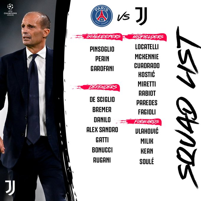 ⚪⚫ I convocati per la nostra prima sfida di Champions League 📋⭐ #PSGJuve