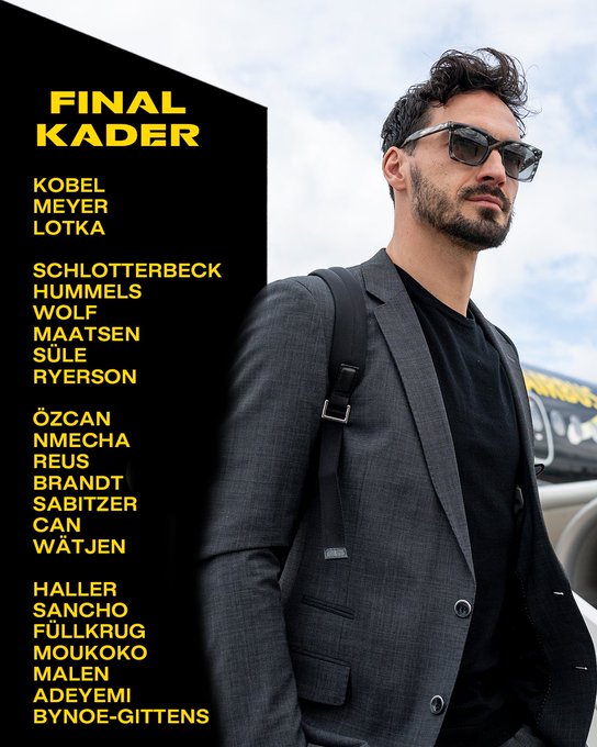 Finaliste un peu inattendu vu sa saison mitigée en Bundesliga, Dortmund a le mérite d’avoir fait un véritable sans-faute en LDC. Premier de son groupe devant le PSG ou le Milan AC, le club allemand a ensuite passé les tours sans trembler jusqu’à sa belle victoire en demi-finales contre Paris. En finale de la Ligue des Champions pour la première fois depuis 2013 et l’époque Jurgen Klopp, le BvB rêve maintenant d’accrocher une deuxième étoile sur son maillot après le sacre européen de 1997. Mais pour cela, les hommes d’Edin Terzić vont devoir franchir une montagne, le Real Madrid. Haller est absent.