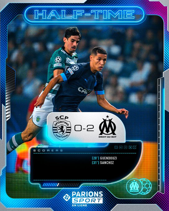 Amorphe en première période, le Sporting tentait le tout pour le tout dès le début du second acte. Lopez devait intervenir devant Goncalves avant que Clauss ne détourne le tir de Reis en corner (46e). Mais, l'OM était bien le patron à Lisbonne. Les Marseillais étaient proches de planter un troisième but sur un festival d'Harit mais le Marocain ne cadrait pas au point de penalty (55e). Le suspense du match était définitivement plombé par la tension des Portugais. Goncalves prenait jaune pour une faute sur Balerdi, râlait et prenait le deuxième dans la foulée pour laisser les siens à neuf contre onze. Harit loupait une nouvelle balle de 3-0 (69e) mais globalement l'OM maîtrisait les débats pour l'emporter sans suer. Avec ce second succès de suite, l'OM rejoint et dépasse son adversaire du soir à la deuxième place du groupe (6 points chacun). Tottenham les devance après sa victoire sur Francfort.