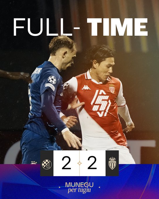 𝗙𝗶𝗻 𝗱𝘂 𝗺𝗮𝘁𝗰𝗵 🔚 Dans des conditions difficiles, nos Rouge & Blanc n'auront rien lâché et repartent de Zagreb avec un point 👊 𝗗𝗔𝗚𝗛𝗘 𝗠𝗨𝗡𝗘𝗚𝗨 🔴⚪️ 2⃣-2⃣ #GNKASM