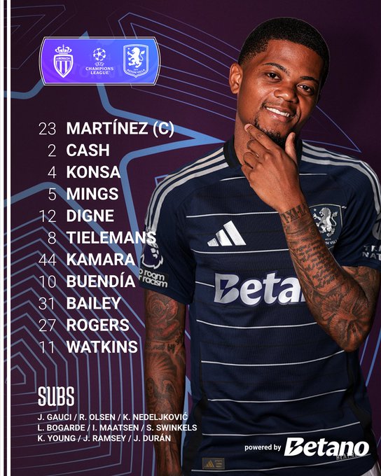 Tonight's Aston Villa team to face AS Monaco 👊 #ASMAVL || #UpTheVilla