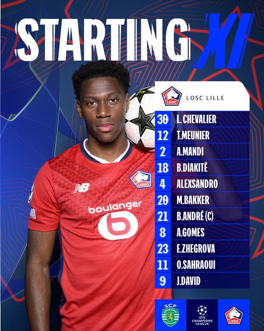 XI de départ 🆚 @SportingCP 𝑳𝒆𝒕'𝒔 𝒈𝒐 👊 @ChampionsLeague #SCPLOSC