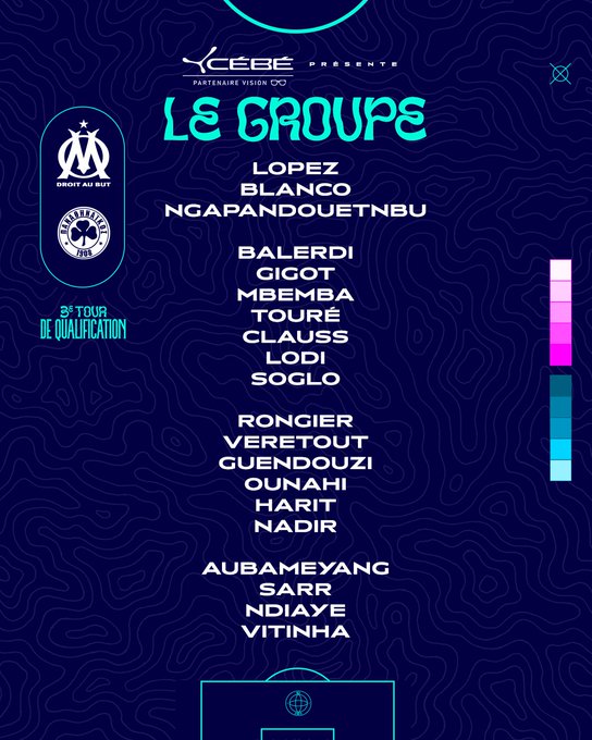 👥 #OMPAOFC Les 2️⃣0️⃣ joueurs retenus par Marcelino pour le match de ce soir à l’@orangevelodrome ⚡️