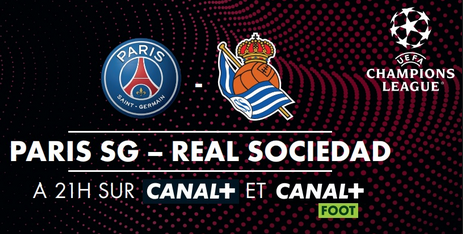 PSG / Real Sociedad ce mercredi à 21h sur C+. Commentaires : P. Tchoukriel et @BeyeHabib Bord terrain : @DomArmand Interview : @Chagabs 19h : Jour de Foot au Parc avec @EricBesnard1, G. Garetier, Bruno Cheyrou et @JessicaHouara 19h45 : Canal Champions Club avec @MathouxHerve