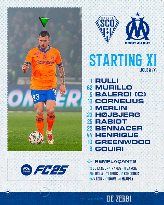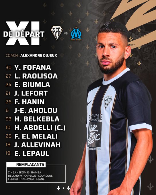 👥 𝗦𝗧𝗔𝗥𝗧𝗜𝗡𝗚 ⚔️ #SCOOM Voici la composition de 𝑹𝒐𝒃𝒆𝒓𝒕𝒐 𝑫𝒆 𝒁𝒆𝒓𝒃𝒊 pour cette rencontre face à Angers ! 🔥