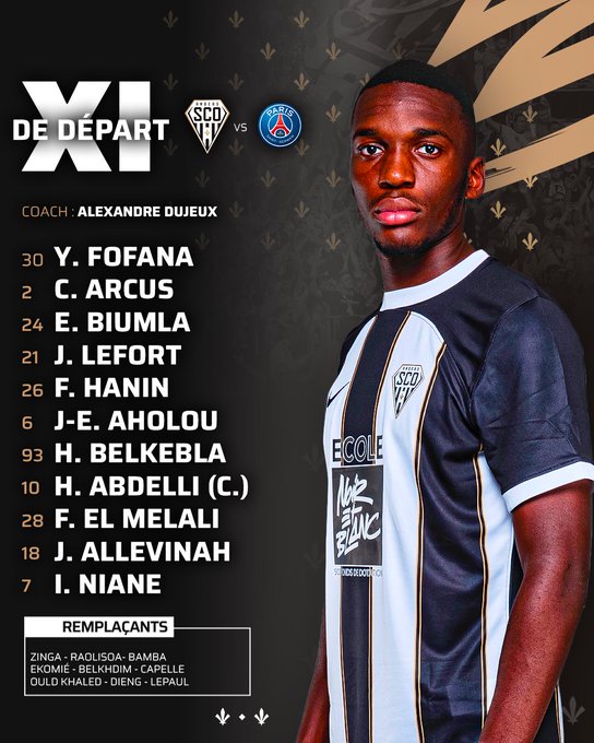Le 𝗫𝗜 aligné par le Coach Dujeux pour affronter le PSG ⚔️ Coup d'envoi dans une heure 👀 #SCOPSG