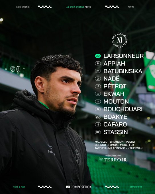 👤 Le XI stéphanois pour #ASSESDR dans une heure tout pile ! 👊💚