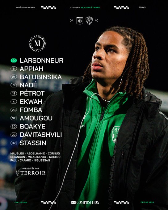 👊 Le XI stéphanois aligné par Eirik Horneland pour #AJAASSE ! 👥 Allez les Verts ! 💚