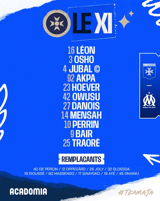 Léon - Hoever, Osho, Jubal, Akpa, Mensah - Owusu, Danois, Perrin, Traoré - Bair