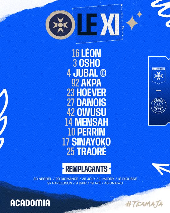 Léon - Osho, Jubal, Akpa - Hoever, Danois, Owusu, Mensah - Perrin, Traoré - Sinayoko