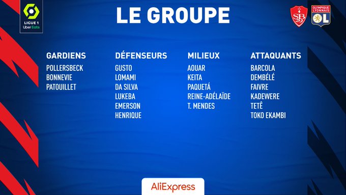 Le groupe lyonnais pour le déplacement à Brest, ce mercredi à 21h ! 🦁🔴🔵 #SB29OL #AliExpress