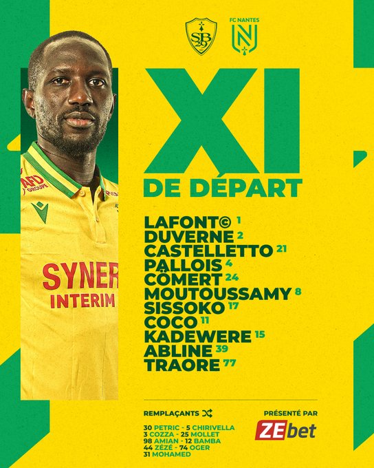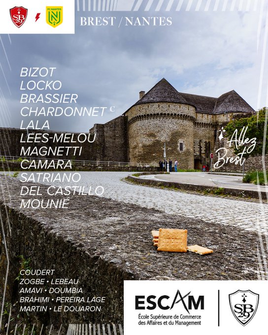 𝗦𝘂𝗽𝗽𝗼𝗿𝘁𝗲𝗿𝘀 𝗯𝗿𝗲𝘀𝘁𝗼𝗶𝘀 ! 🔴⚪ Voici le 𝐎𝐍𝐙𝐄 de départ pour affronter le FC Nantes ! 🔥 #SB29FCN