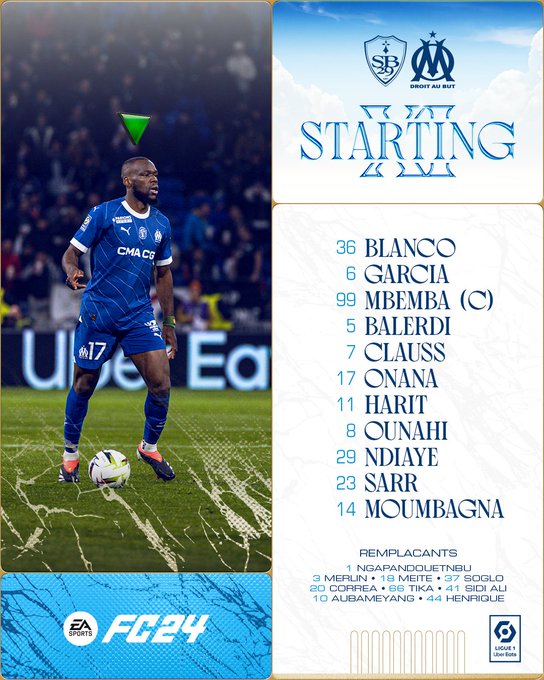 👥 🅒🅞🅜🅟🅞 #SB29OM Voici le 𝐗𝐈 𝐝𝐞 𝐝𝐞́𝐩𝐚𝐫𝐭 concocté par 𝗰𝗼𝗮𝗰𝗵 𝗚𝗮𝘁𝘁𝘂𝘀𝗼 🇮🇹 pour cette rencontre face à Brest ! ⚔️