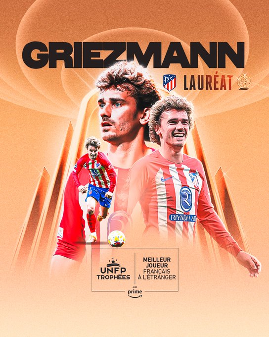 Il aura dû patienter huit ans... 🍾 Premier lauréat en 2016 du Trophée UNFP du meilleur joueur français à l’étranger, Antoine Griezmann, la régularité faite footballeur, double la mise 🏆 Grande Antoine ! 👏 #TropheesUNFP