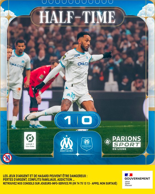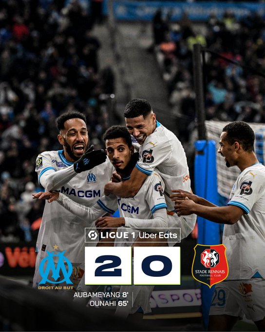 Suite à sa qualification pour la phase finale de l’Europa League jeudi, l’OM voulait impérativement reprendre sa marche en avant en L1. Et le moins que l’on puisse dire, c’est que Marseille mettait toutes les chances de son côté pour réaliser un bon résultat. Puisque dès le début du match, les Phocéens obtenaient un penalty pour une faute de Wooh sur Ndiaye (7e). Une offrande transformée par Aubameyang (1-0 à la 8e), qui trompait Mandanda à contre-pied pour inscrire son quatrième but de la semaine après son triplé en C3. Avec ce but d’avance, l’OM laissait le jeu à Rennes mais Terrier ne faisait pas mouche (16e). Au retour des vestiaires, le SRFC cherchait à revenir dans le match, mais le club breton se plombait une nouvelle fois avec un carton rouge, Wooh étant expulsé pour un violent tacle sur Kondogbia à 30 mètres du but marseillais (61e). En supériorité numérique, Marseille ne traînait pas à faire la différence, vu qu’Ounahi, de retour dans le onze de départ, trompait Mandanda d’une frappe puissante au terme d’un numéro en solo de grande classe au coeur d’une défense rennaise apathique (2-0 à la 65e). L’OM pensait être tranquille jusqu’au bout, mais c’était sans compter sur Ndiaye, qui écopait lui aussi d’un rouge pour une vilaine semelle sur Belocian (68e). En fin de match, Harit était persuadé d’alourdir l’écart mais son but était refusé pour un hors-jeu au départ de l’action (78e). Le tableau d'affichage ne bougeait plus jusqu'au coup de sifflet final malgré quelques occasions rennaises (2-0).